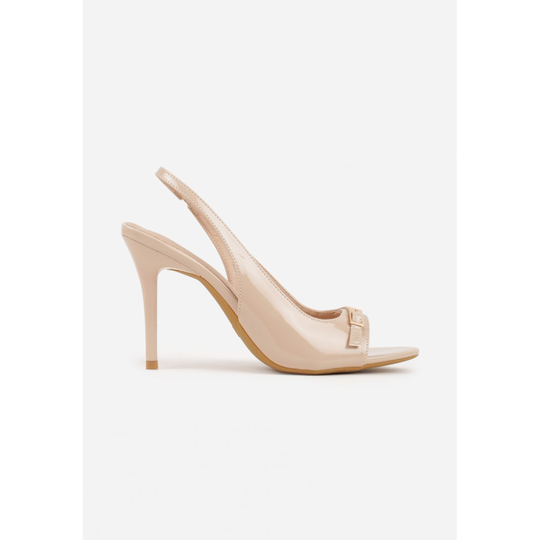Eleganckie sandały damskie na smukłej szpilce, wykonane ze skóry ekologicznej z wkładką z ekoskóry. Model z otwartym noskiem, zapinany na pasek wokół pięty, ozdobiony subtelną klamrą przy palcach. Idealne na sezon wiosenno-letni, w stylu glamour, z gładkim wzorem i minimalistycznym zdobieniem.