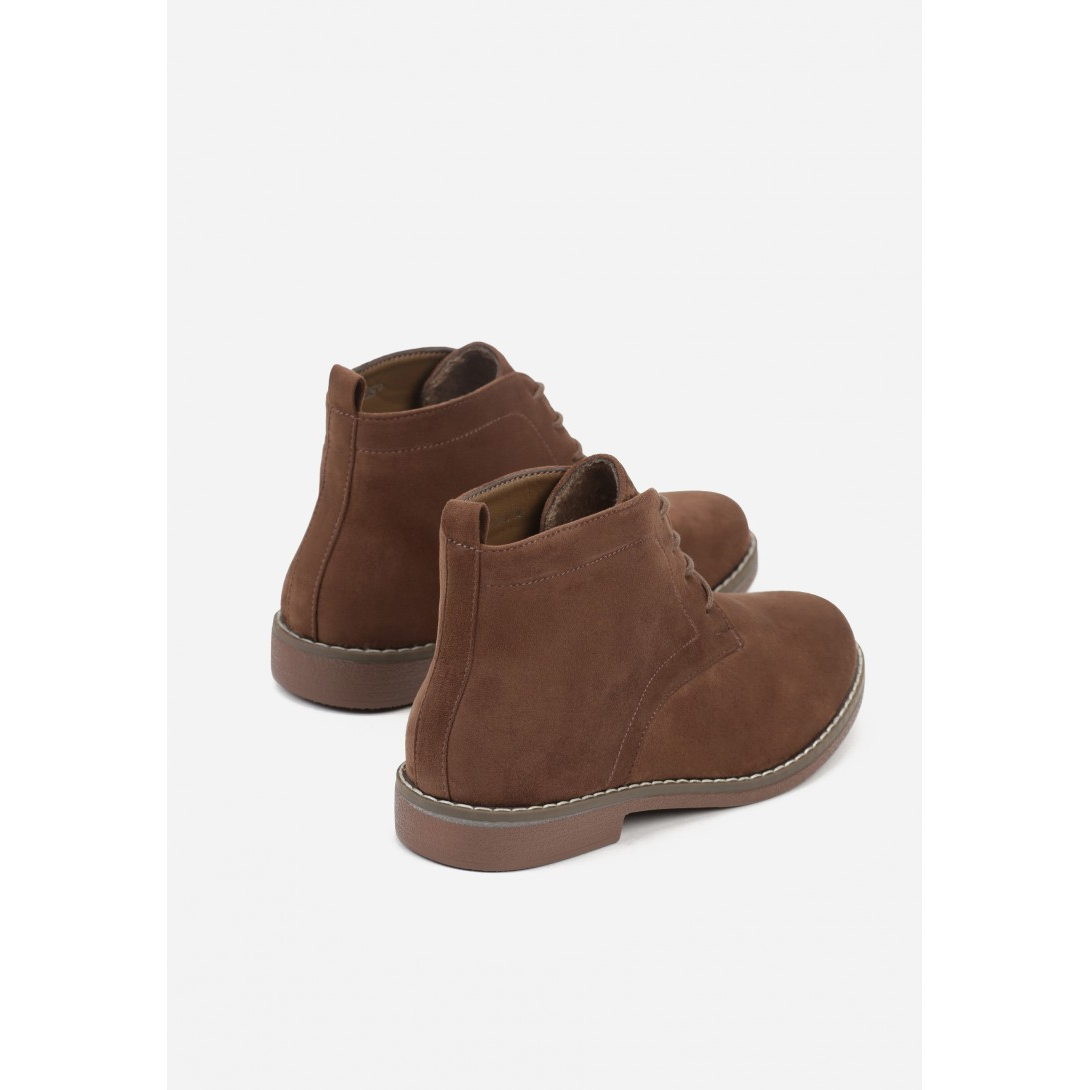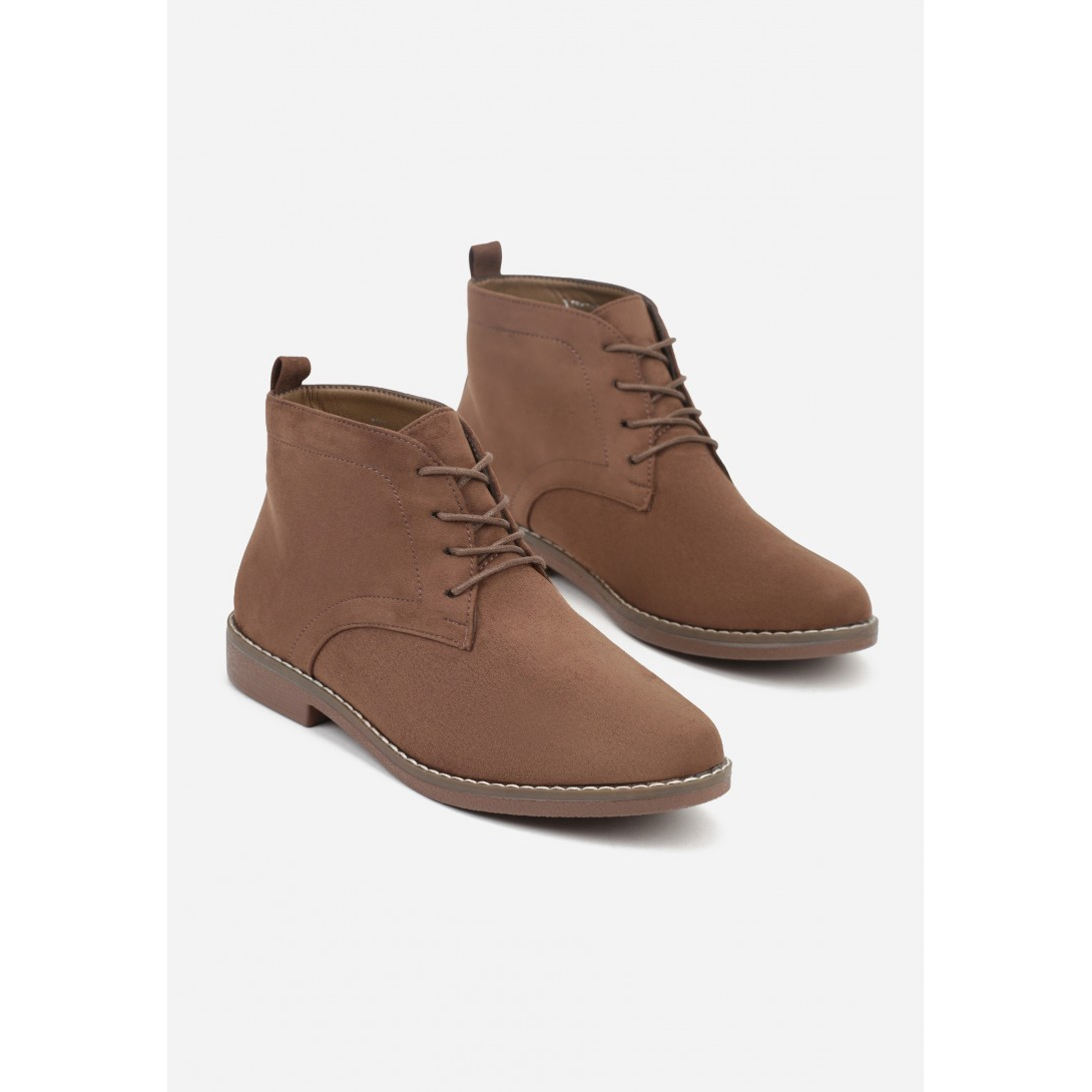 Buty typu sztyblety z zamszowego materiału, zapinane na klasyczne sznurowanie. Posiadają wkładkę z materiału syntetycznego oraz trwałą podeszwę, co zapewnia odpowiednie wsparcie i stabilność podczas użytkowania. Idealne na sezon przejściowy, łączą elegancję z casualowym stylem, doskonale wpisując się w różnorodne codzienne stylizacje.