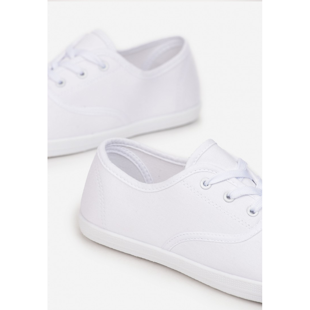 Tenisówki na płaskiej podeszwie. Wsuwane, z wiązaniem z przodu. Cholewka przed kostkę. Wykonane z materiału tekstylnego, wkładka materiał włókienniczy.