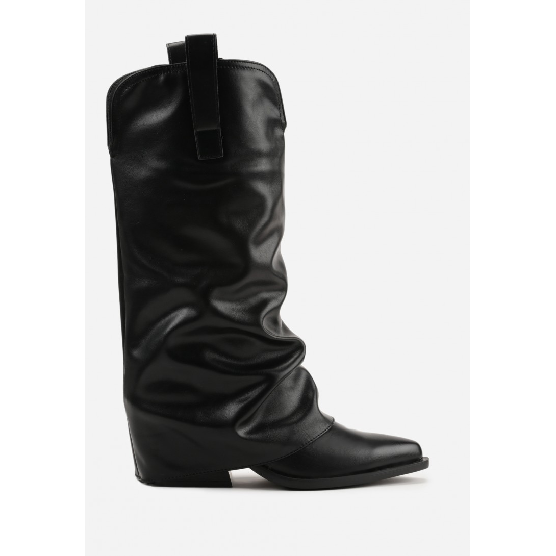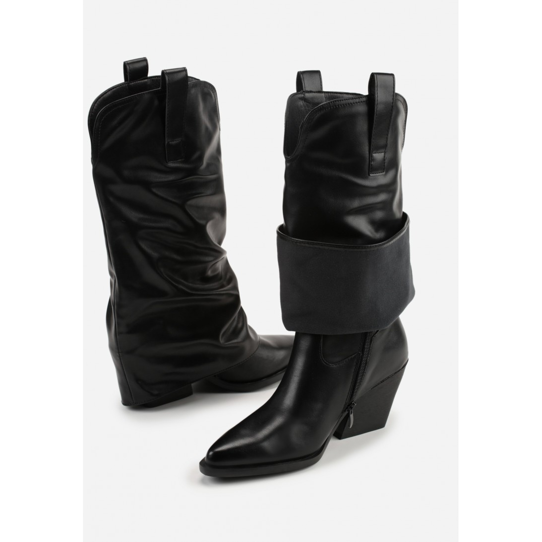 Kozaki o unikalnym designie, osadzone na stabilnym obcasie w kształcie trójkąta, idealnie łączą elegancję z nowoczesnością. Wykonane z wysokiej jakości skóry ekologicznej, zapewniają trwałość oraz estetyczny wygląd. Wnętrze ocieplone, z wkładką z ekoskóry, co czyni je idealnym wyborem na sezon jesienno-zimowy.