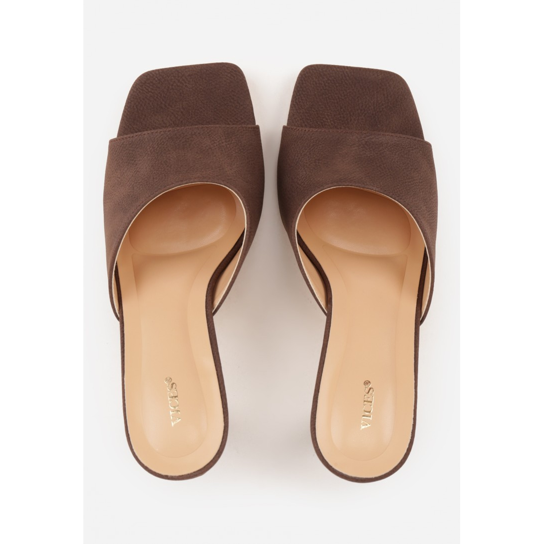 Eleganckie klapki na wysokim obcasie, dumnie osadzone na szpilce o wysokości 8 cm. Wykonane z wysokiej jakości materiału syntetycznego, z wyściółką z ekoskóry, zapewniającą trwałość produktu. Oferują otwarty nos, a ich minimalistyczny styl doskonale wpisuje się w aktualne trendy na sezon letni.