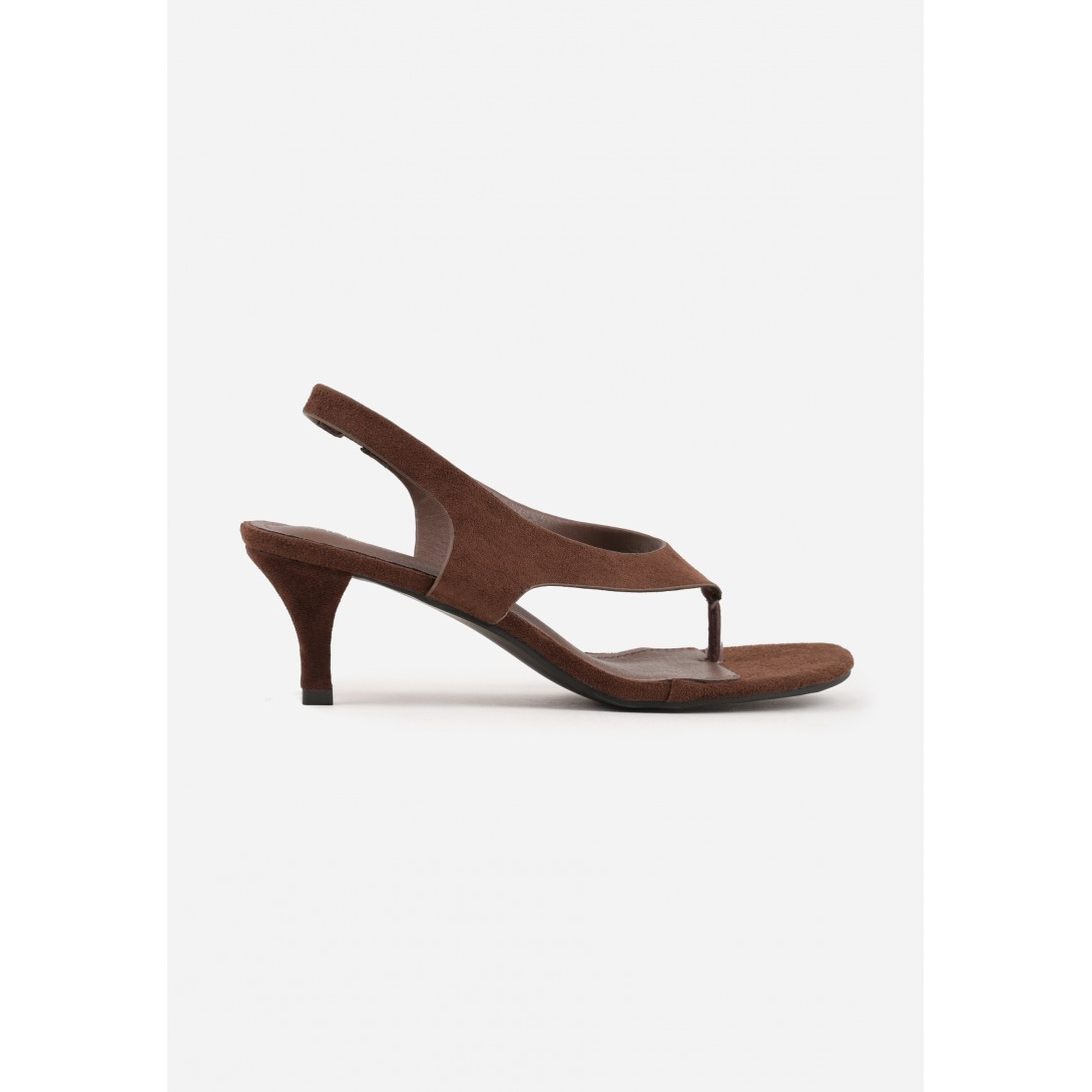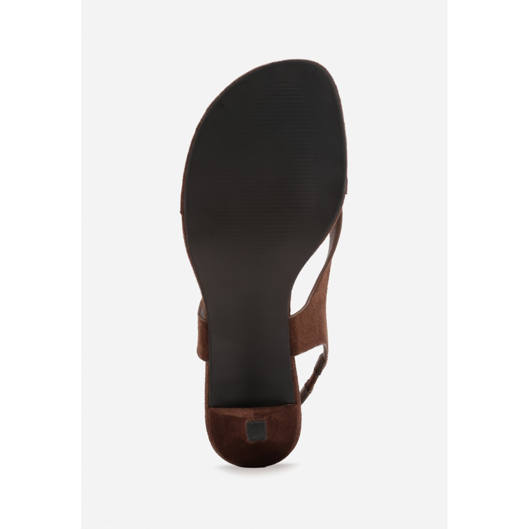 Eleganckie sandały damskie wykonane ze skóry ekologicznej, z wkładką z ekoskóry i otwartym noskiem w smukłym fasonie. Model zapinany wokół kostki, osadzony na stabilnym obcasie typu słupek, idealny na sezon wiosenno-letni; styl uzupełniają subtelne zdobienia i nowoczesny, gładki wzór.