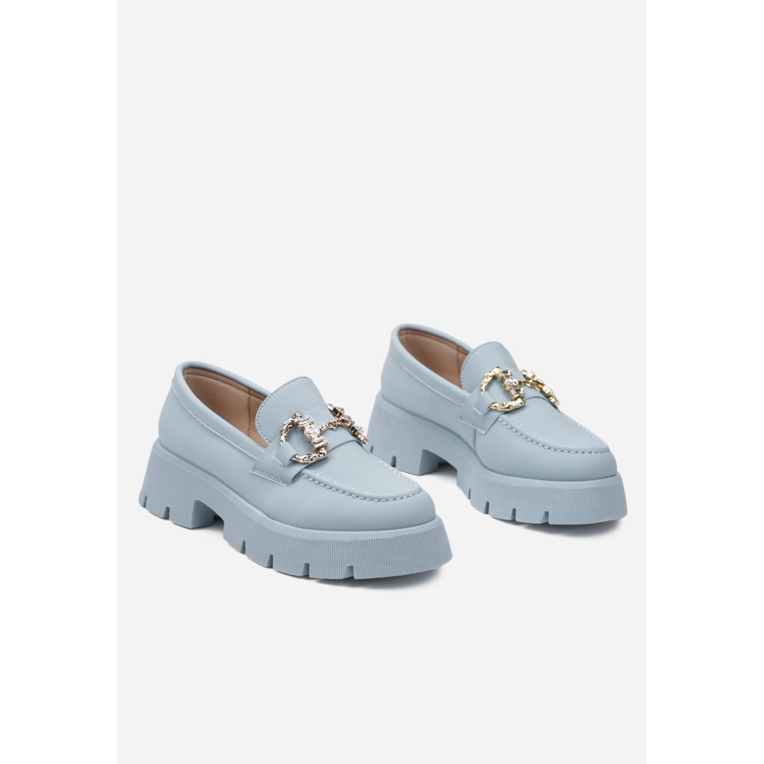 Eleganckie loafersy na solidnej platformie, z unikalnym obcasem o wysokości 5 cm. Wykonane z wysokiej jakości skóry ekologicznej, z wygodną wkładką z ekoskóry, idealną do codziennego użytku. Buty ozdobione są efektownym zapięciem, które dodaje im charakteru i sprawdzi się w różnych stylizacjach.