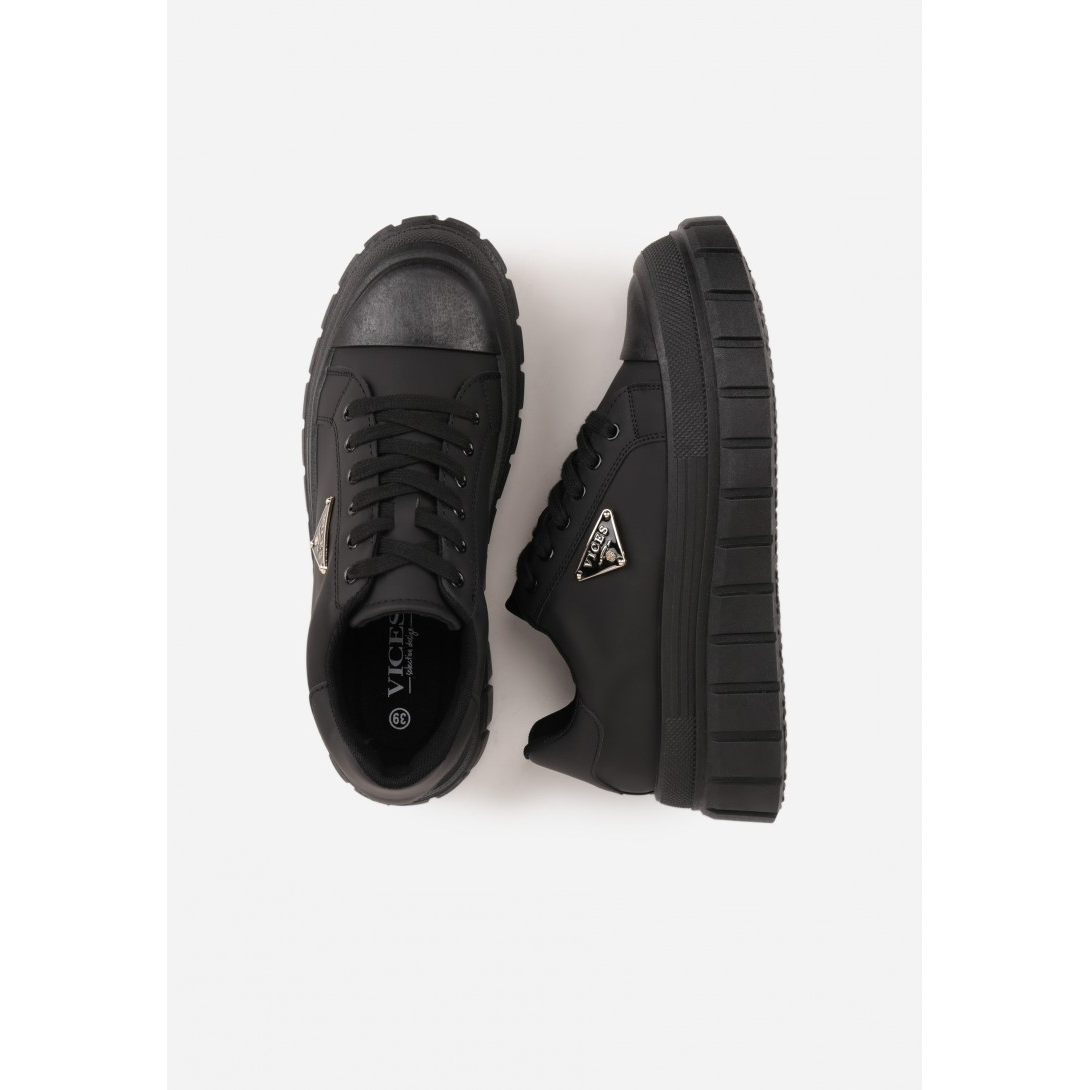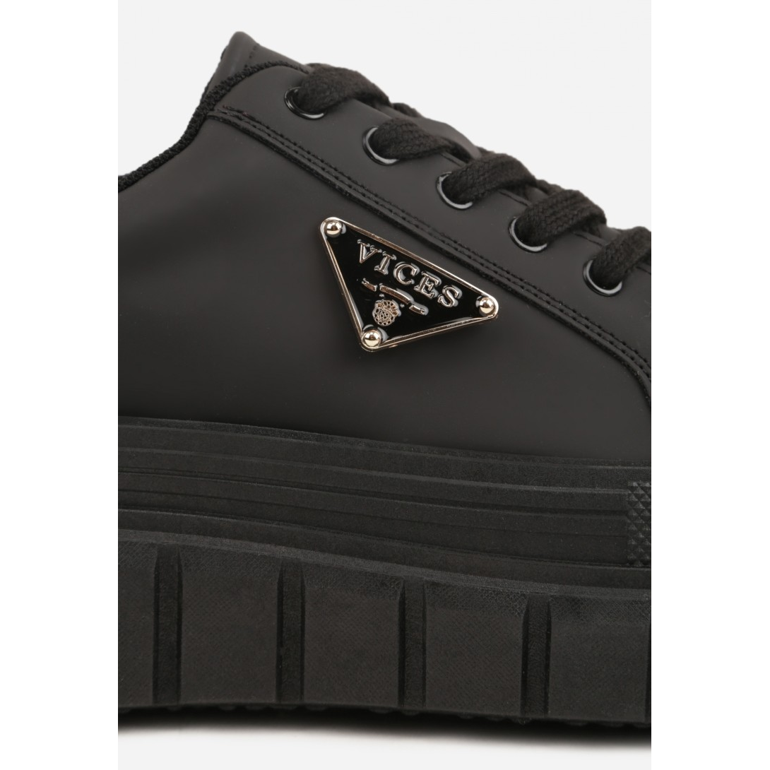 Nowoczesne sneakersy na grubej, geometrycznej podeszwie. Wykonane z materiału syntetycznego z komfortową wkładką, zapewniającą odpowiednią wentylację. Zapięcie na sznurówki oraz ozdobny logo z przodu nadają im modny charakter, idealne na różne okazje.