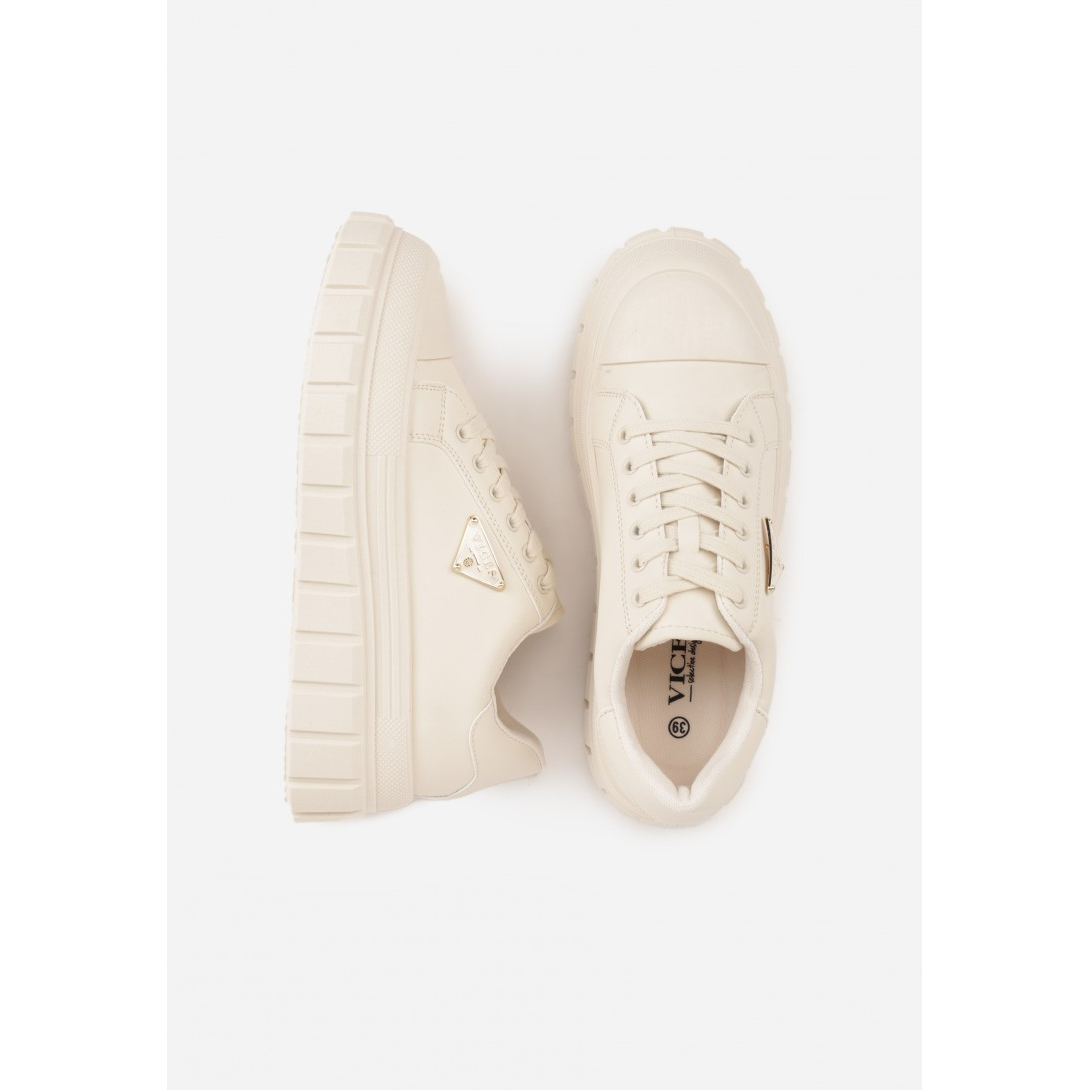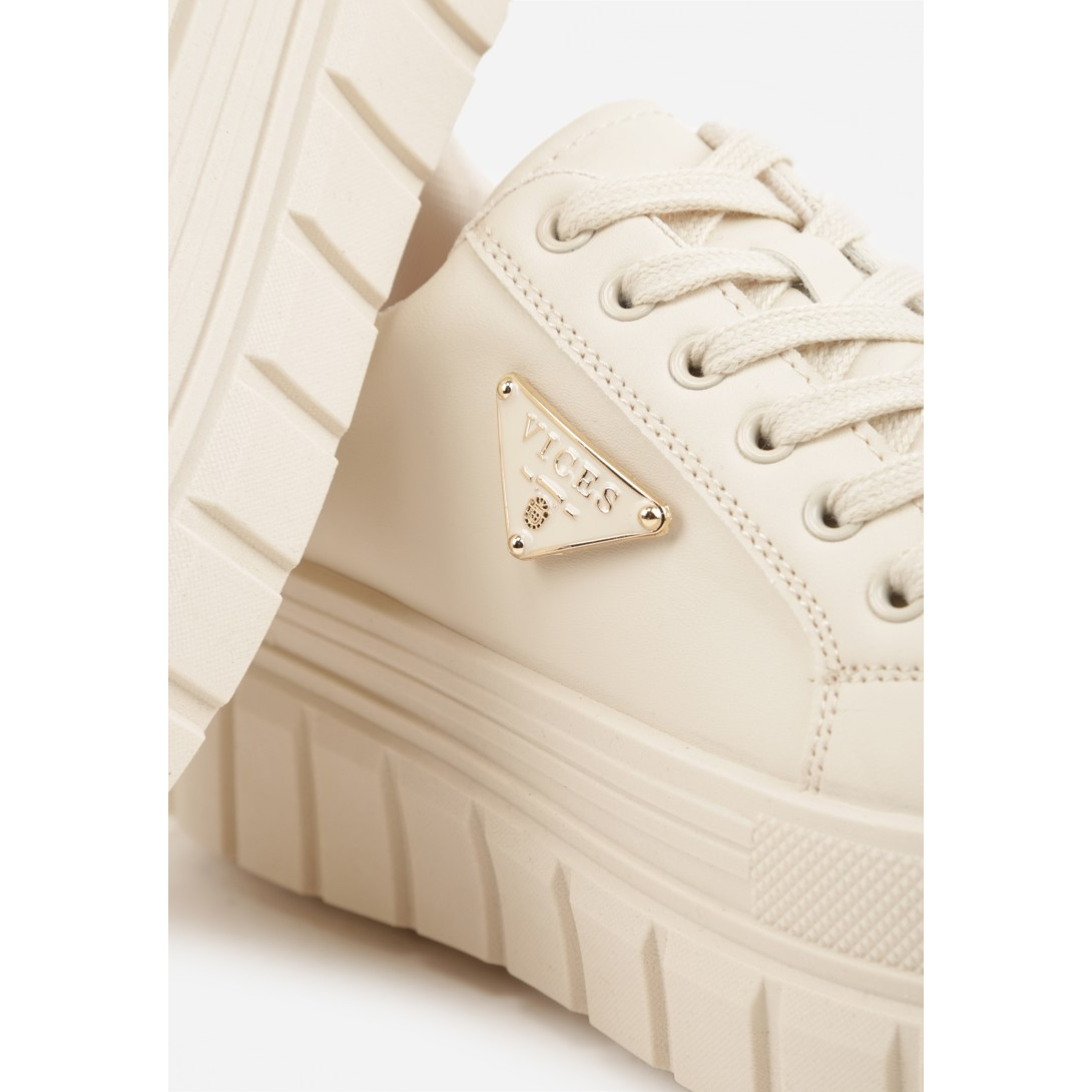 Nowoczesne sneakersy na grubej, geometrycznej podeszwie. Wykonane z materiału syntetycznego z komfortową wkładką, zapewniającą odpowiednią wentylację. Zapięcie na sznurówki oraz ozdobny logo z przodu nadają im modny charakter, idealne na różne okazje.