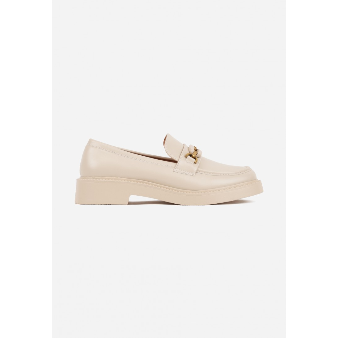 Eleganckie loafersy z niskim obcasem o wysokości 4 cm, idealne na różne okazje. Wykonane z wysokiej jakości skóry ekologicznej, z wkładką z ekoskóry, co zapewnia trwałość i łatwość w pielęgnacji. Nosek buta w klasycznym stylu, zdobiony metalowym detalem, podkreśla nowoczesny design i elegancję.