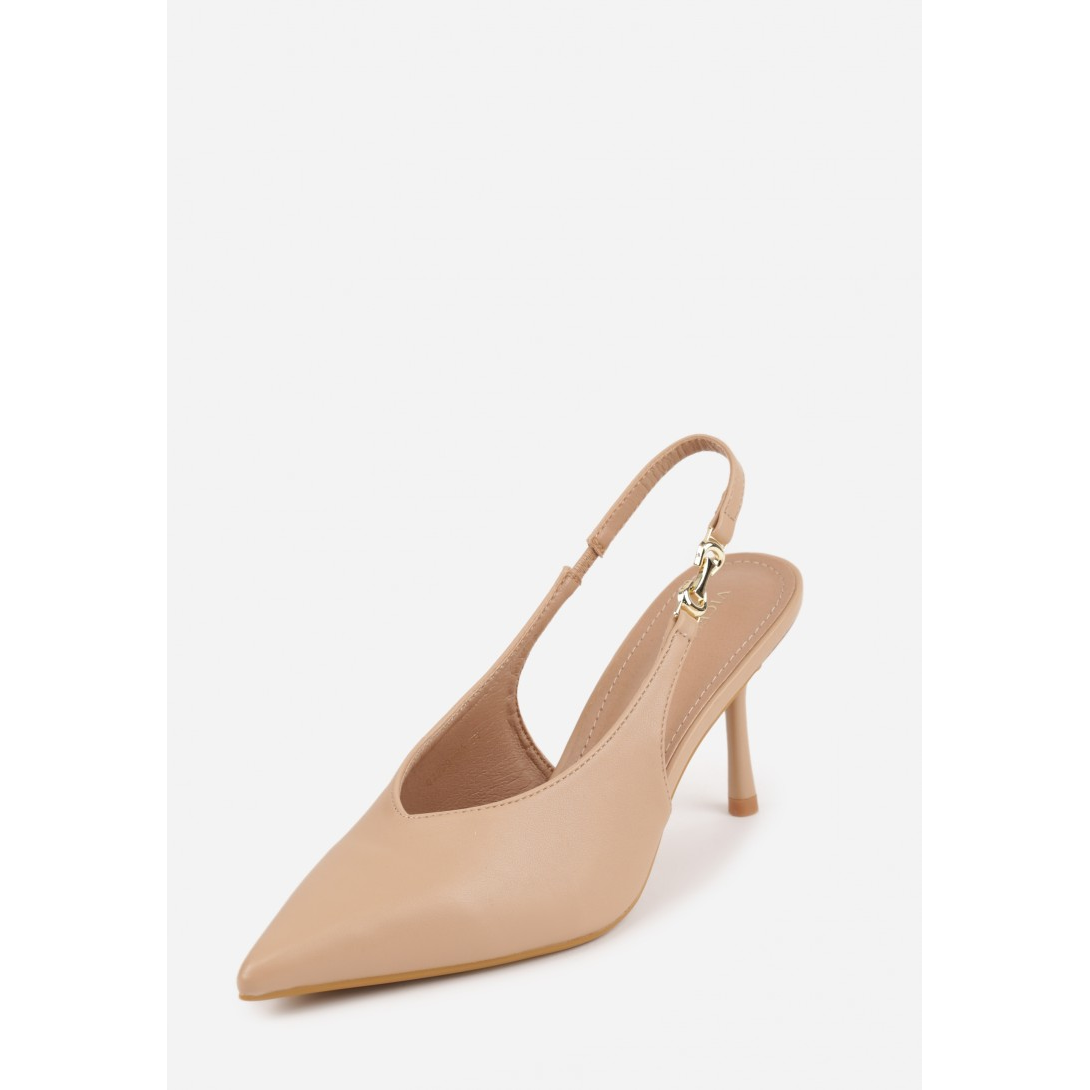 Eleganckie czółenka z delikatnym zapięciem na pięcie, osadzone na smukłym obcasie o wysokości 7 cm. Wykonane z wysokiej jakości materiałów, wkładka z ekoskóry zapewnia odpowiedni komfort podczas noszenia. Charakterystyczny, szpiczasty noski buta nadaje im nowoczesnego stylu, idealnego na wiosenne i letnie wyjścia.