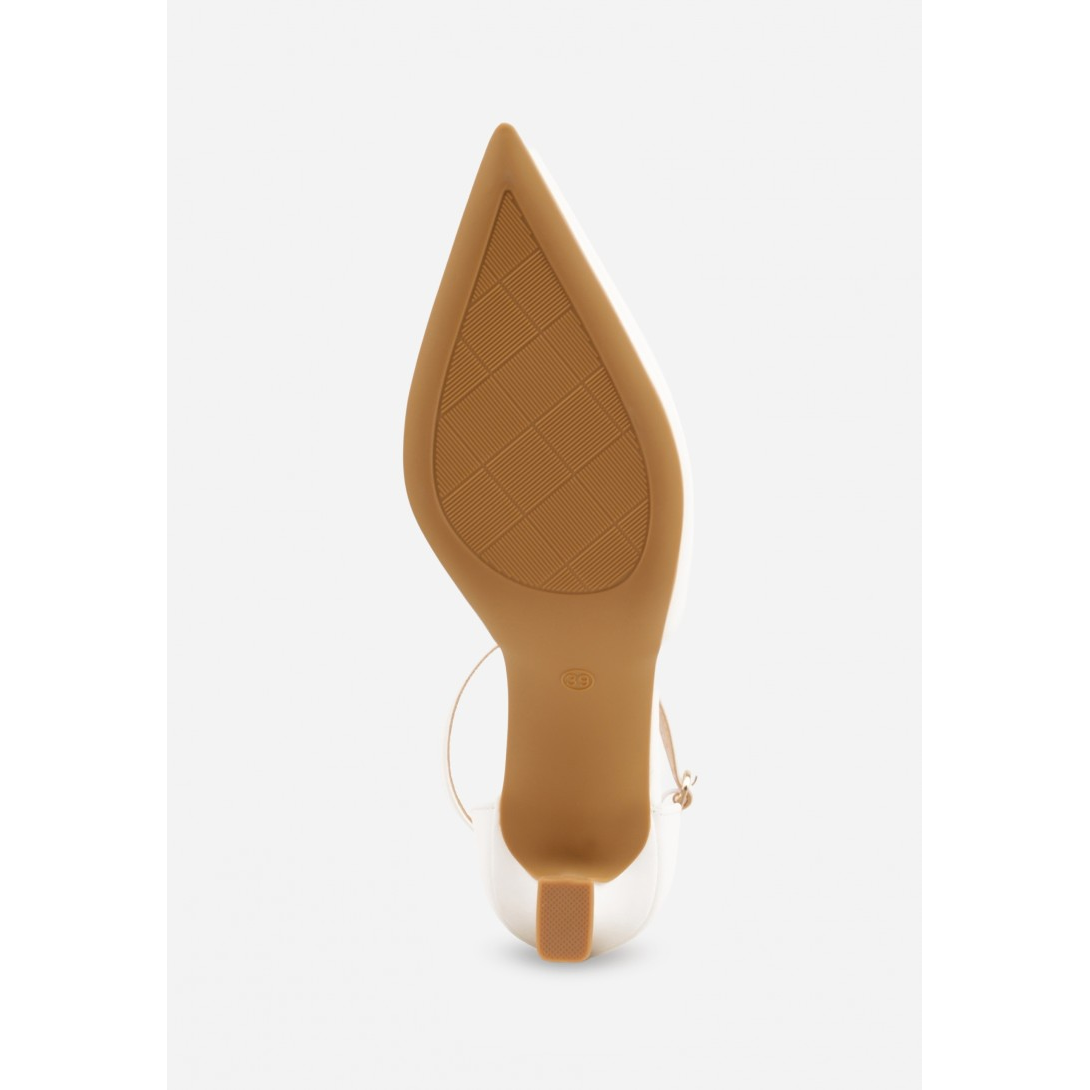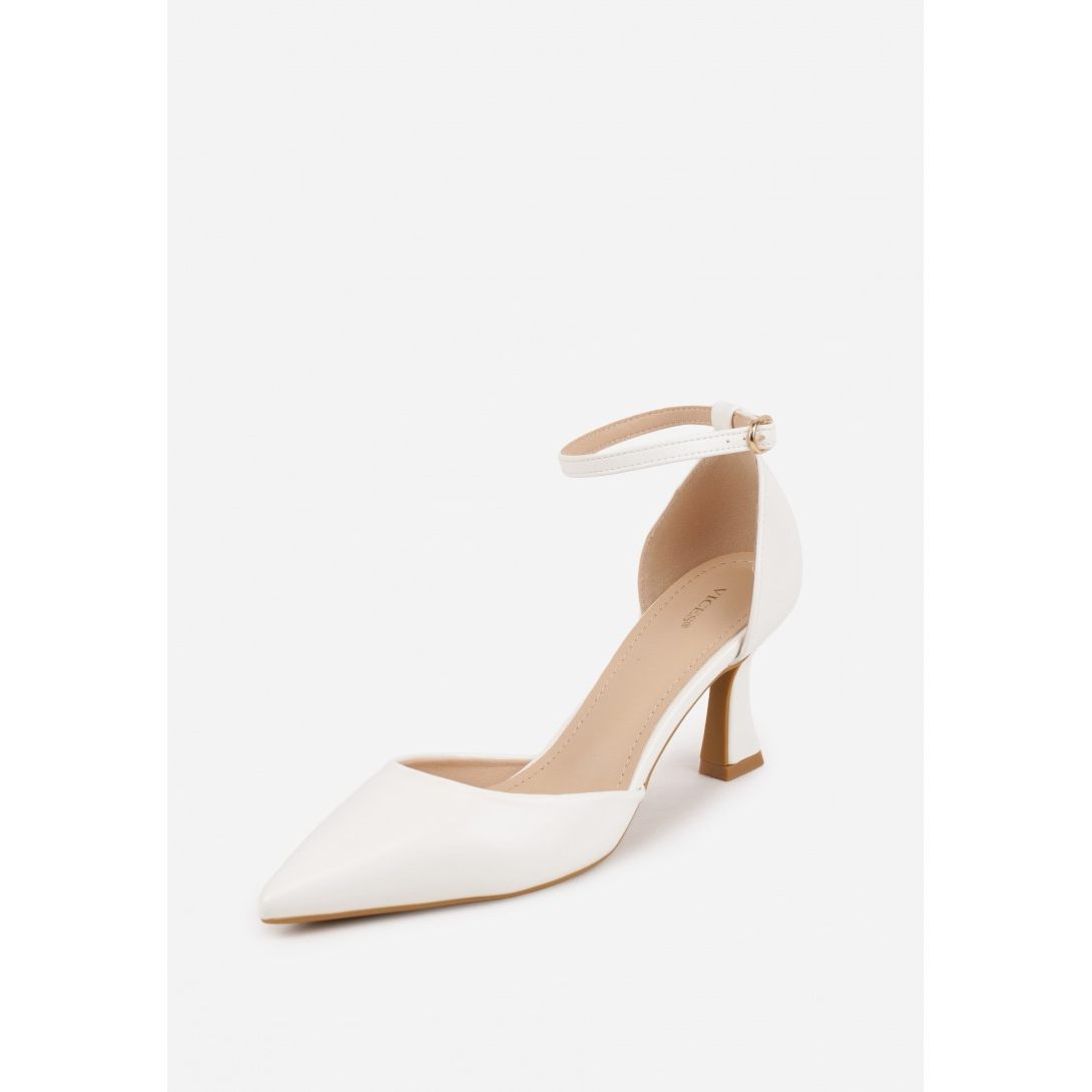 Eleganckie szpilki z ekskluzywnej skóry ekologicznej, osadzone na obcasie o wysokości 6 cm. Nosek w kształcie szpica dodaje zestawieniu wyrafinowania, a zwężany fason podkreśla kobiecą sylwetkę. Model zapinany na wygodną sprzączkę wokół kostki, idealny na specjalne okazje oraz wyjścia do biura.