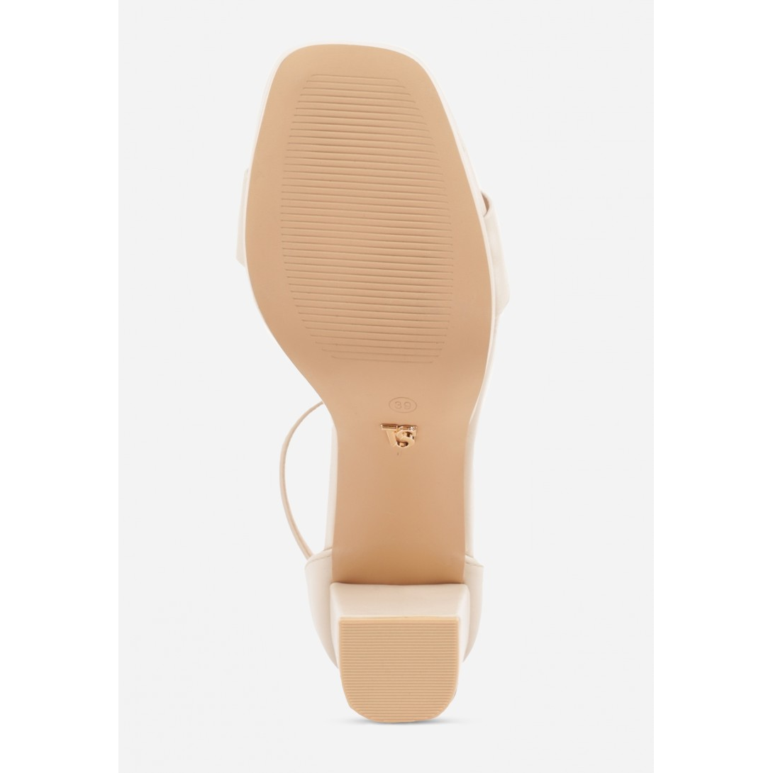 Sandały na wysokim obcasie, z kwadratowym noskiem, idealne na sezon wiosenno-letni. Wykonane z wysokiej jakości materiału syntetycznego, z wkładką z ekoskóry, co zapewnia trwałość i nowoczesny wygląd. Zapięcie na elegancką sprzączkę w kostce oraz efektowny, szeroki obcas o wysokości 8 cm podkreślają ich stylowy charakter.