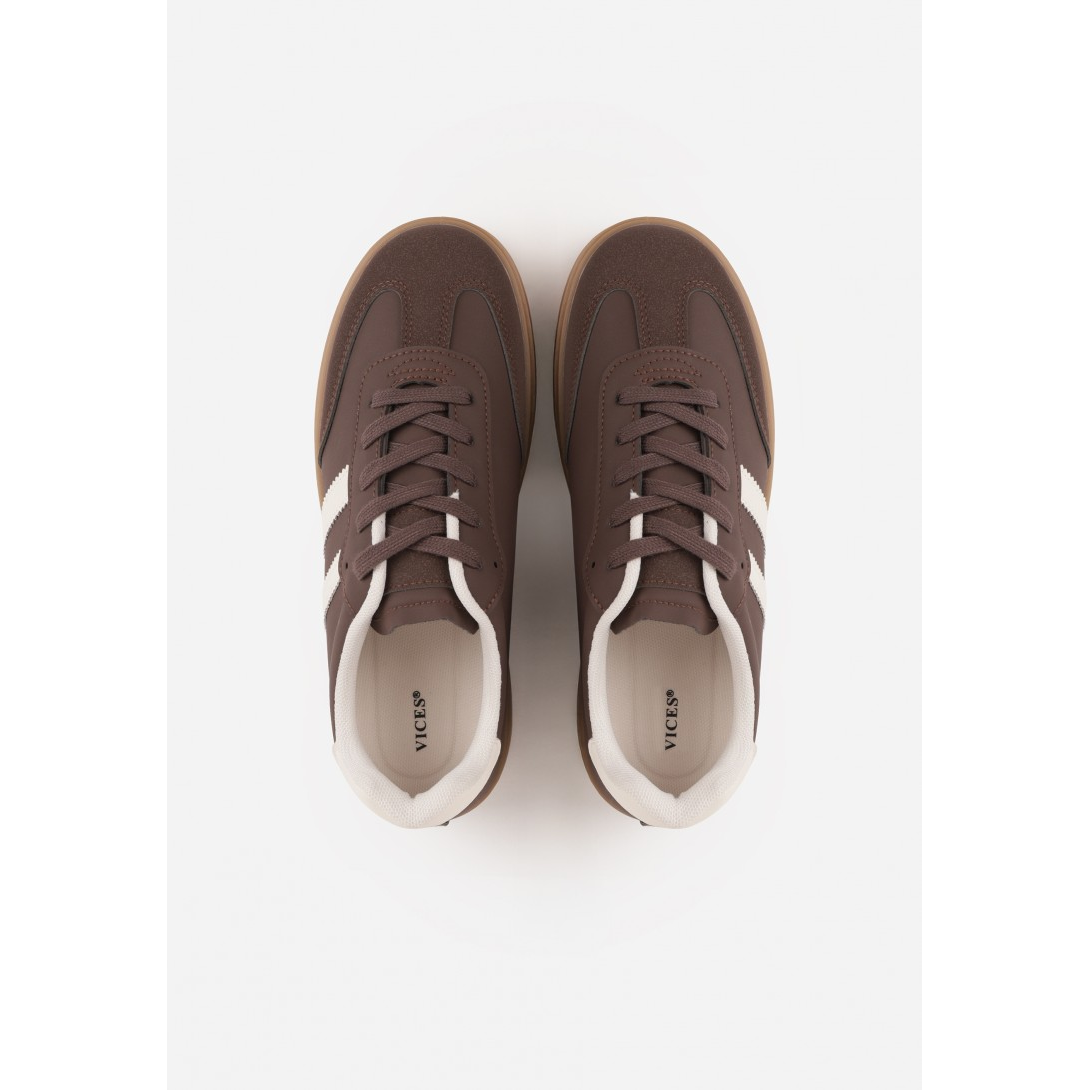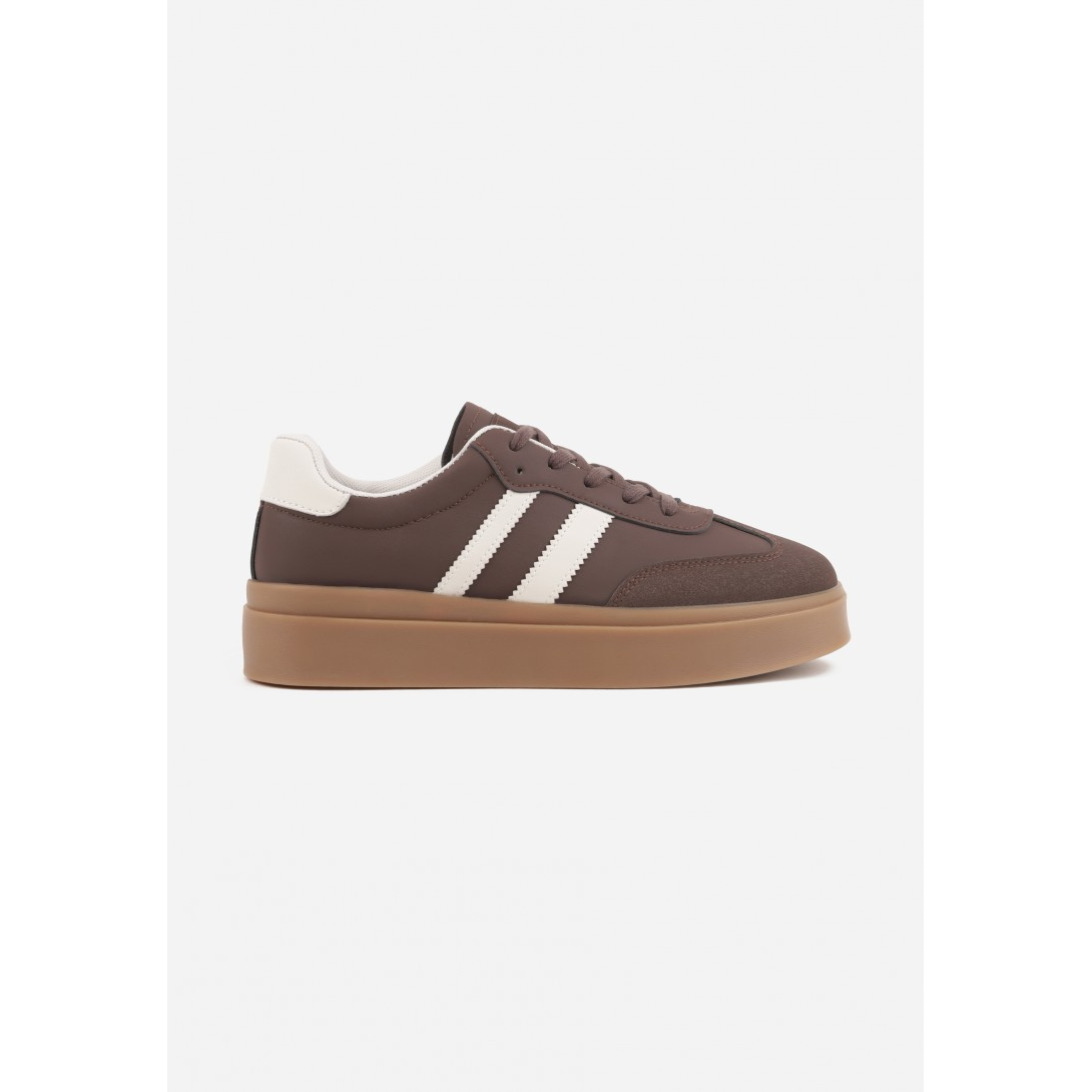 Modne sneakersy o klasycznym designie z subtelnymi paskami na boku. Wykonane z wysokiej jakości materiałów syntetycznych, zapewniają trwałość i łatwość w pielęgnacji. Zapięcie na sznurówki oraz gruba podeszwa, gwarantują stabilność i modny wygląd w każdej stylizacji.