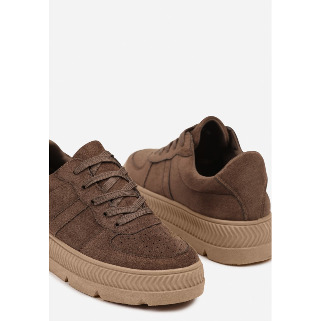Creepersy na grubej, masywnej podeszwie z bieżnikiem i żłobieniami — dodaje im charakteru, jak również zapewnia doskonałą przyczepność na różnych nawierzchniach. Naszywki w tym samym kolorze i z tego samego materiału, co reszta buta, tworzą spójny i harmonijny wygląd. Wykonane z ekozamszu. Zaokrąglony nosek butów nadaje im delikatnego wyglądu, równoważąc masywność podeszwy i tworząc atrakcyjny kontrast. Wkładka wykonana z materiału tekstylnego.