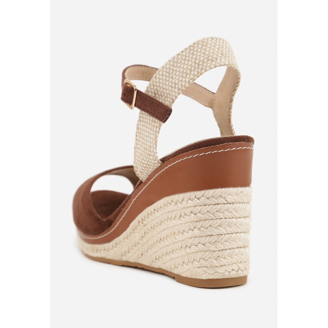 Sandały na koturnie zapinane na sprzączkę. Koturn i podeszwa wykonane z plecionki z juty.