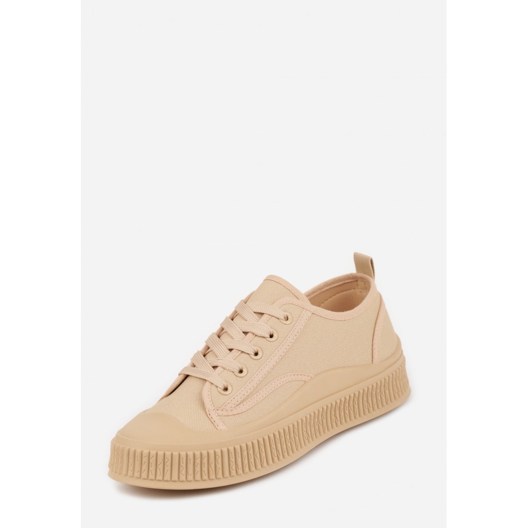 Sportowe buty damskie z niską cholewką, osadzone na gumowej podeszwie o atrakcyjnym wzorze. Wykonane z wysokiej jakości materiału tekstylnego, z wkładką z ekoskóry, zapewniającą komfort użytkowania. Proste zapięcie na sznurówki oraz klasyczny nos zapewniają uniwersalny styl, idealny na wiosenne i letnie dni.