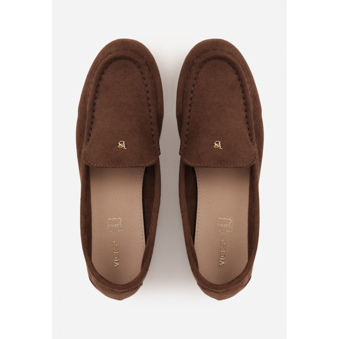 Stylowe mokasyny damskie w klasycznym, ponadczasowym wydaniu. Wykonane z miękkiego zamszu w ciepłym, brązowym odcieniu, łączą elegancję z codziennym komfortem. Ich prosta, wsuwana forma sprawia, że są niezwykle wygodne i praktyczne w użytkowaniu.Delikatne przeszycia oraz subtelny detal na cholewce dodają całości charakteru, nie zaburzając minimalistycznej estetyki. Niski profil i płaska podeszwa gwarantują wygodę przez cały dzień, czyniąc je idealnym wyborem zarówno do pracy, jak i na co dzień.