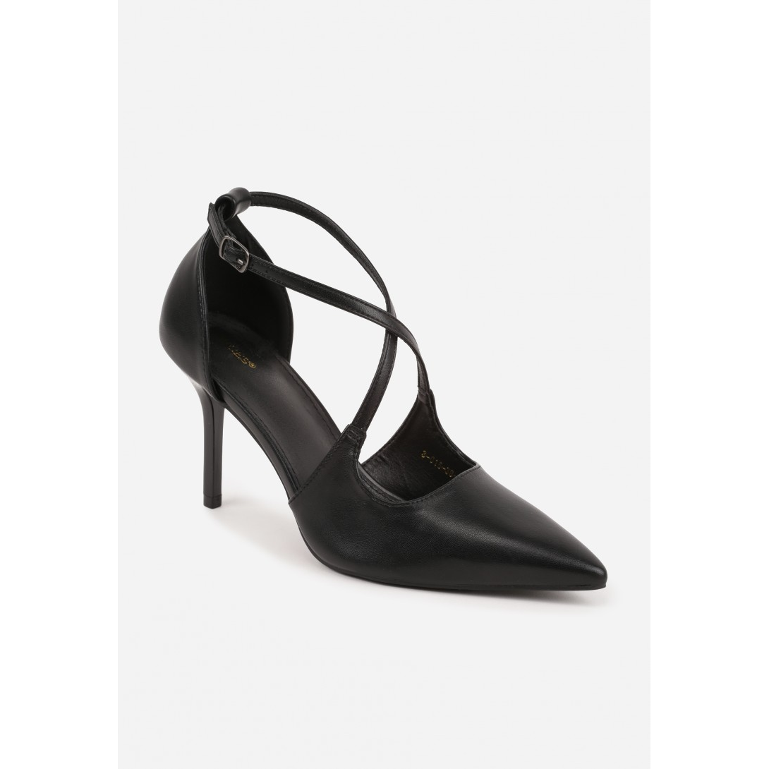 Czółenka damskie wykonane z materiału o gładkim wykończeniu, osadzone na smukłej szpilce, z noskiem w szpic i krzyżującym się zapięciem wokół stopy oraz regulowaną sprzączką przy kostce. Wkładka i wyściółka zostały dopracowane z myślą o użytkowaniu, a całość uzupełnia subtelne przeszycie i minimalistyczna dekoracja. Model idealny na sezon wiosenno-letni, utrzymany w eleganckim stylu, z jednolitym wzorem.