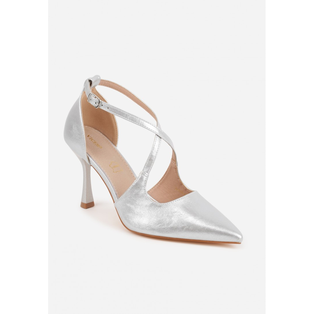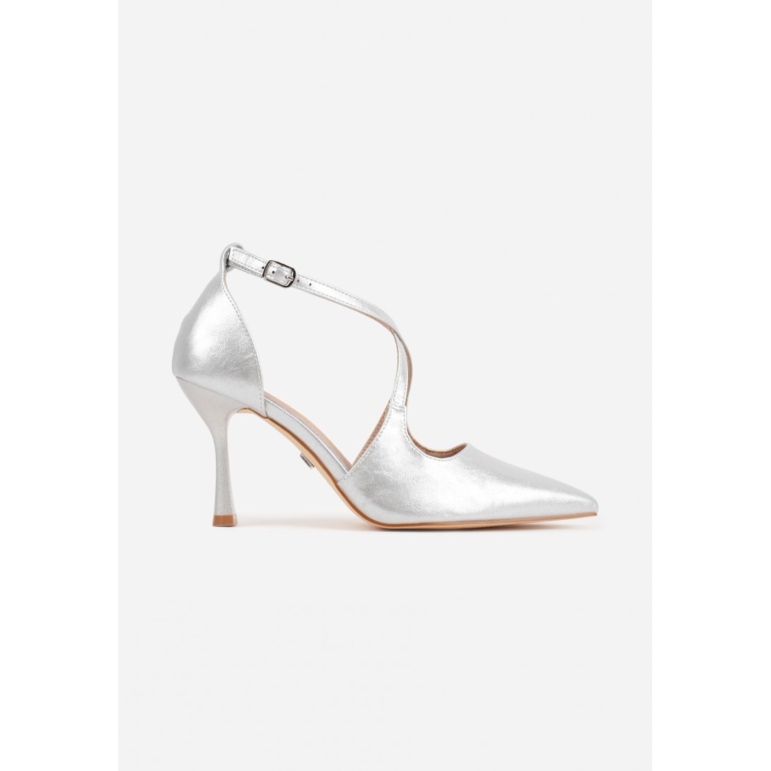 Czółenka damskie wykonane ze skóry ekologicznej, osadzone na smukłej szpilce o geometrycznym profilu. Model z ostrym noskiem, zapięciem na sprzączkę przy kostce oraz wkładką z ekoskóry. Idealne na sezon wiosenno-letni, w stylu eleganckim, gładkie, z subtelnym wycięciem i minimalistycznym zdobieniem.