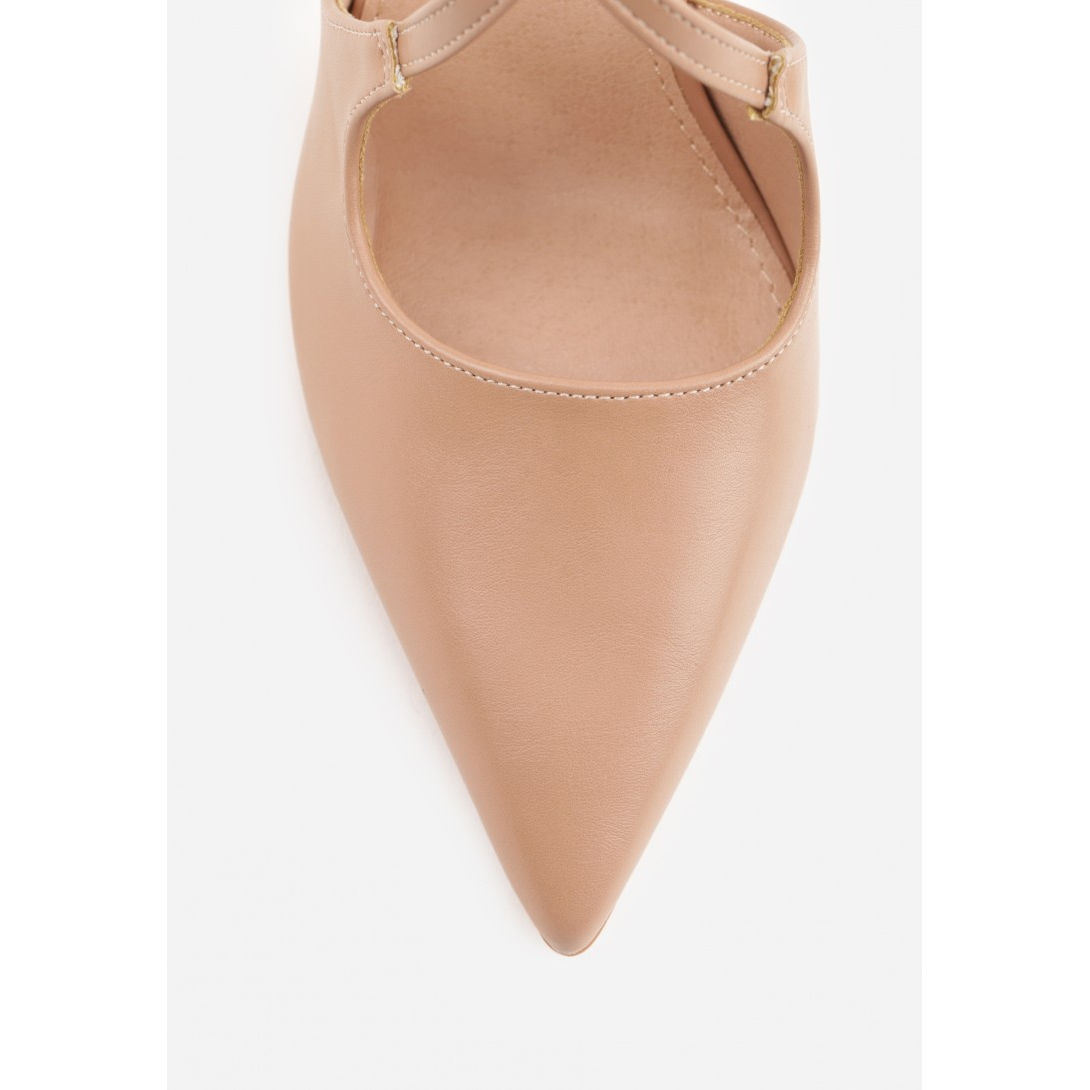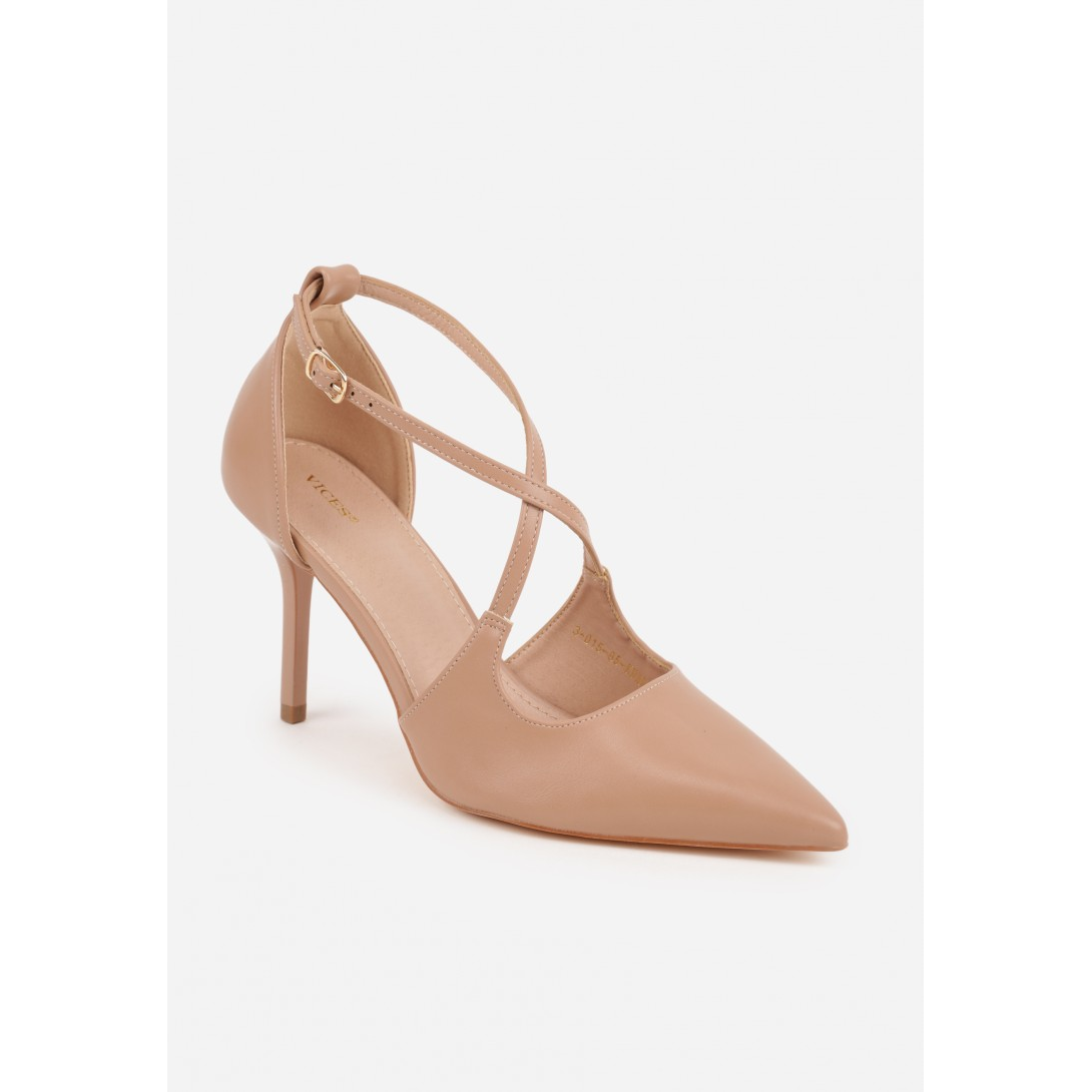 Czółenka damskie wykonane z materiału o gładkim wykończeniu, osadzone na smukłej szpilce, z noskiem w szpic i krzyżującym się zapięciem wokół stopy oraz regulowaną sprzączką przy kostce. Wkładka i wyściółka zostały dopracowane z myślą o użytkowaniu, a całość uzupełnia subtelne przeszycie i minimalistyczna dekoracja. Model idealny na sezon wiosenno-letni, utrzymany w eleganckim stylu, z jednolitym wzorem.