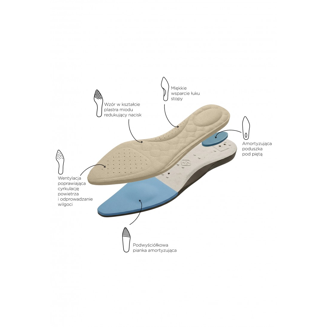 Ażurowe czółenka damskie na smukłym obcasie typu słupek, z ostrym noskiem i regulowanym paskiem z klamerką przy pięcie. Wykonane z materiału tekstylnego, z wkładką ze skóry ekologicznej, idealne na sezon wiosenno-letni. Model o eleganckim, kobiecym stylu, z subtelnym przeszyciem i minimalistycznym wykończeniem, doskonale wpisujący się w ofertę hurtową vices.eu.