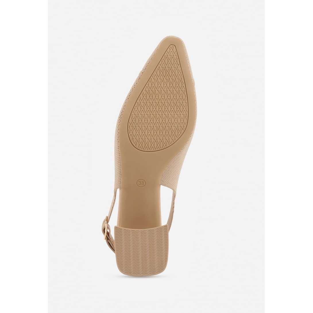 Ażurowe czółenka damskie na stabilnym obcasie typu słupek, wykonane z materiału o oddychającej strukturze. Model posiada miękką wkładkę z ekoskóry, zabudowany nosek oraz zapięcie na pasek ze sprzączką wokół pięty. To eleganckie obuwie w stylu klasycznym, idealne na sezon wiosenno-letni, z subtelnym ażurowym wzorem i wzmocnionym noskiem.