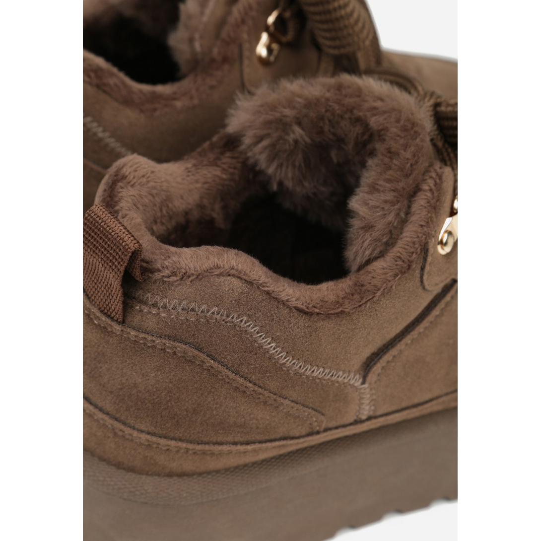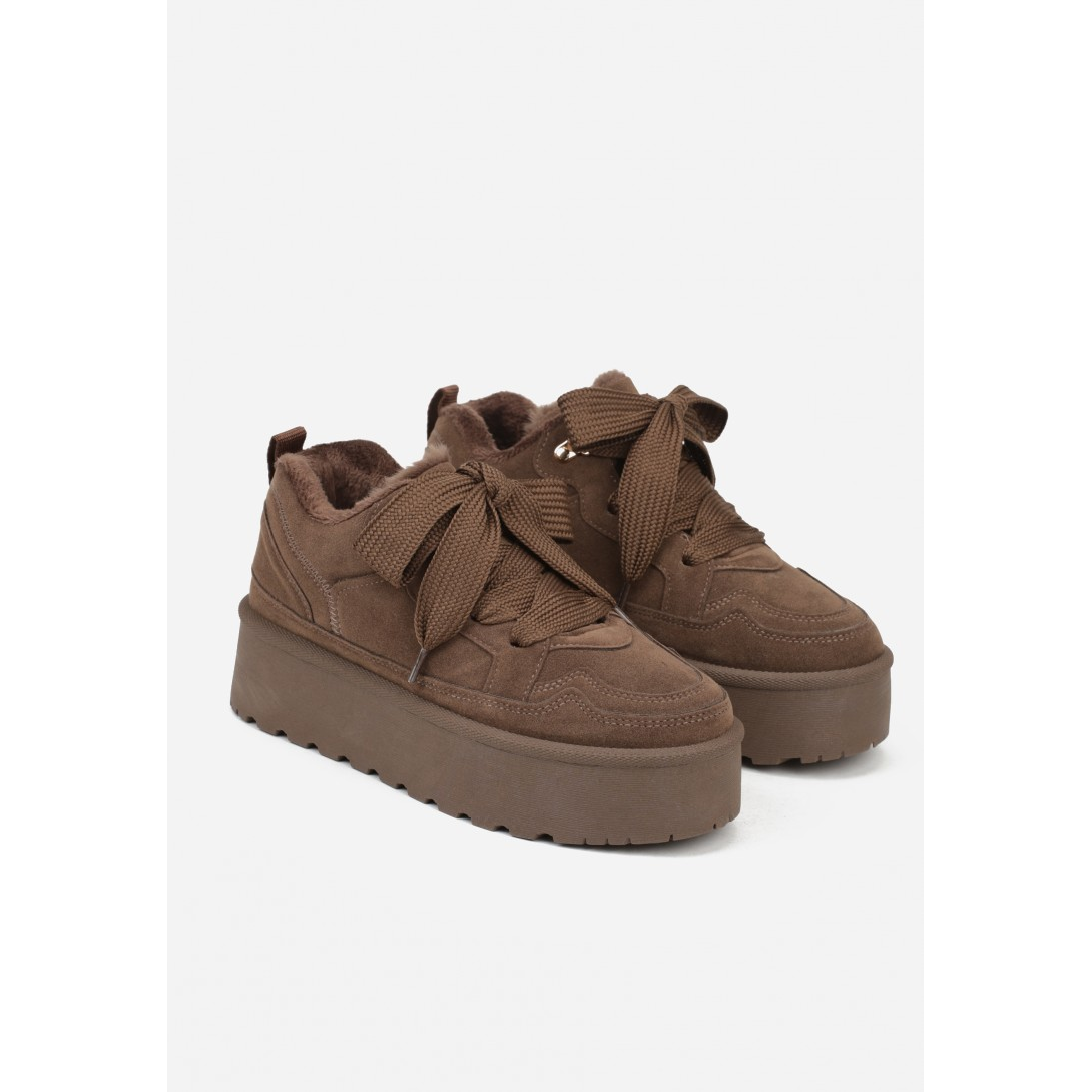 Stylowe sneakersy z platformą, doskonałe na każdą okazję. Wykonane z wysokiej jakości zamszowej skóry syntetycznej, z wygodną wkładką i softshellowym wykończeniem dla lepszej termiczności. Zapięcie na klasyczne sznurowadła oraz ozdobne detale sprawiają, że te buty łączą modny design z funkcjonalnością, idealne na sezon wiosenno-letni.