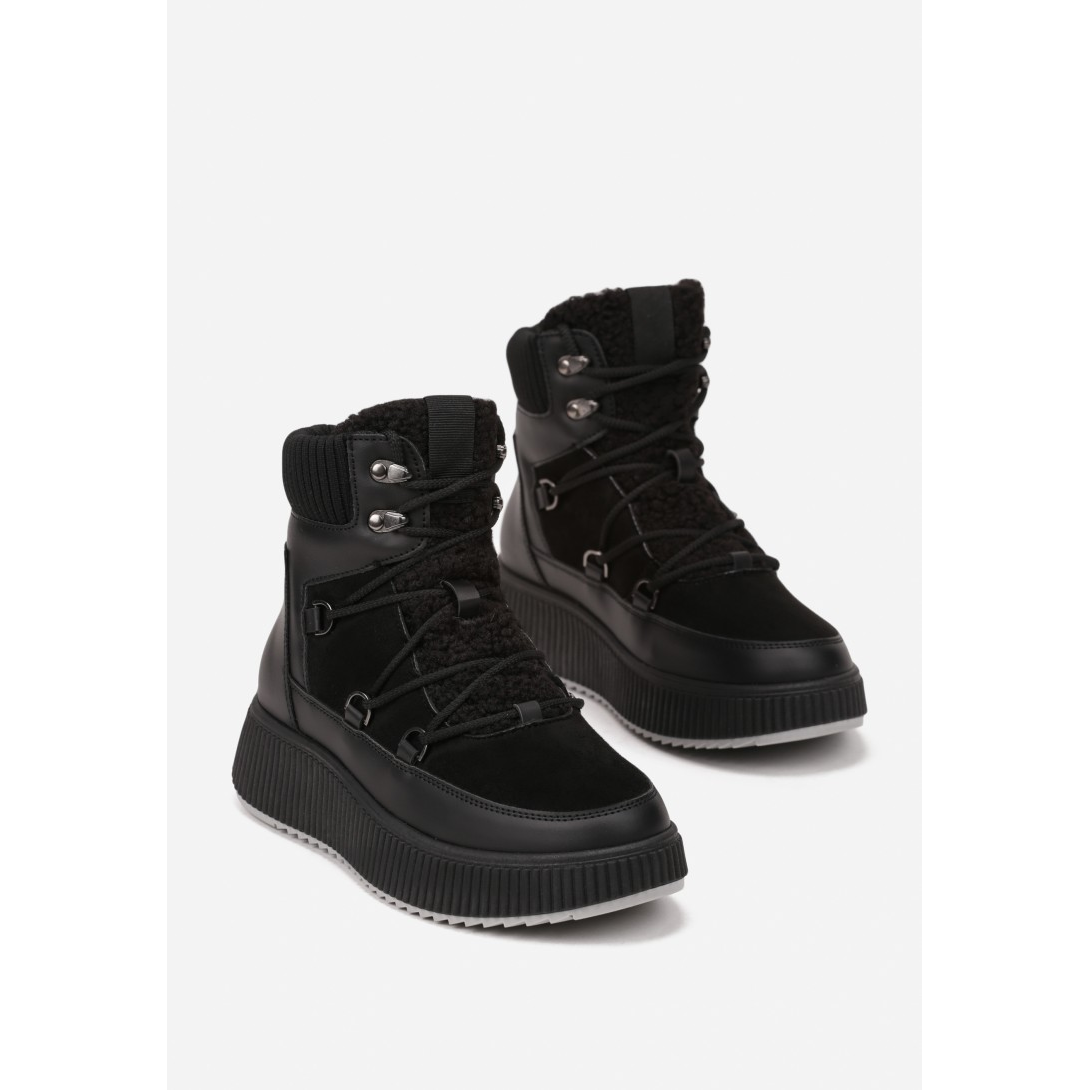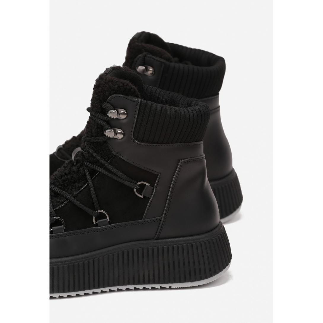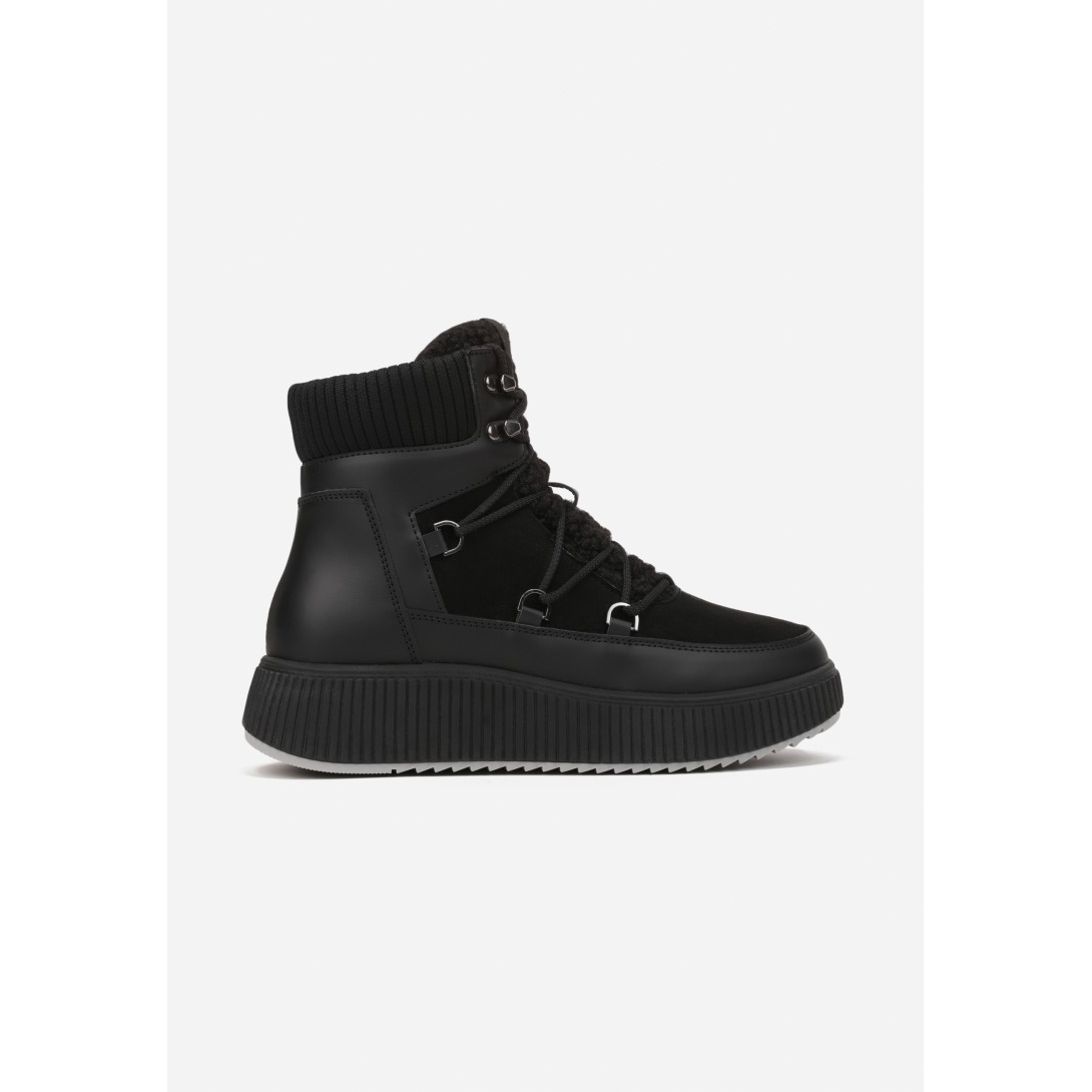 Stylowe buty zimowe z wysokim cholewką, wykonane z miękkiego materiału syntetycznego. Posiadają ocieplenie, które zapewnia komfort w chłodne dni oraz wkładkę z ekoskóry dla lepszej wentylacji. Zapięcie na sznurówki oraz solidna podeszwa o ciekawej strukturze dodają nietuzinkowego charakteru.