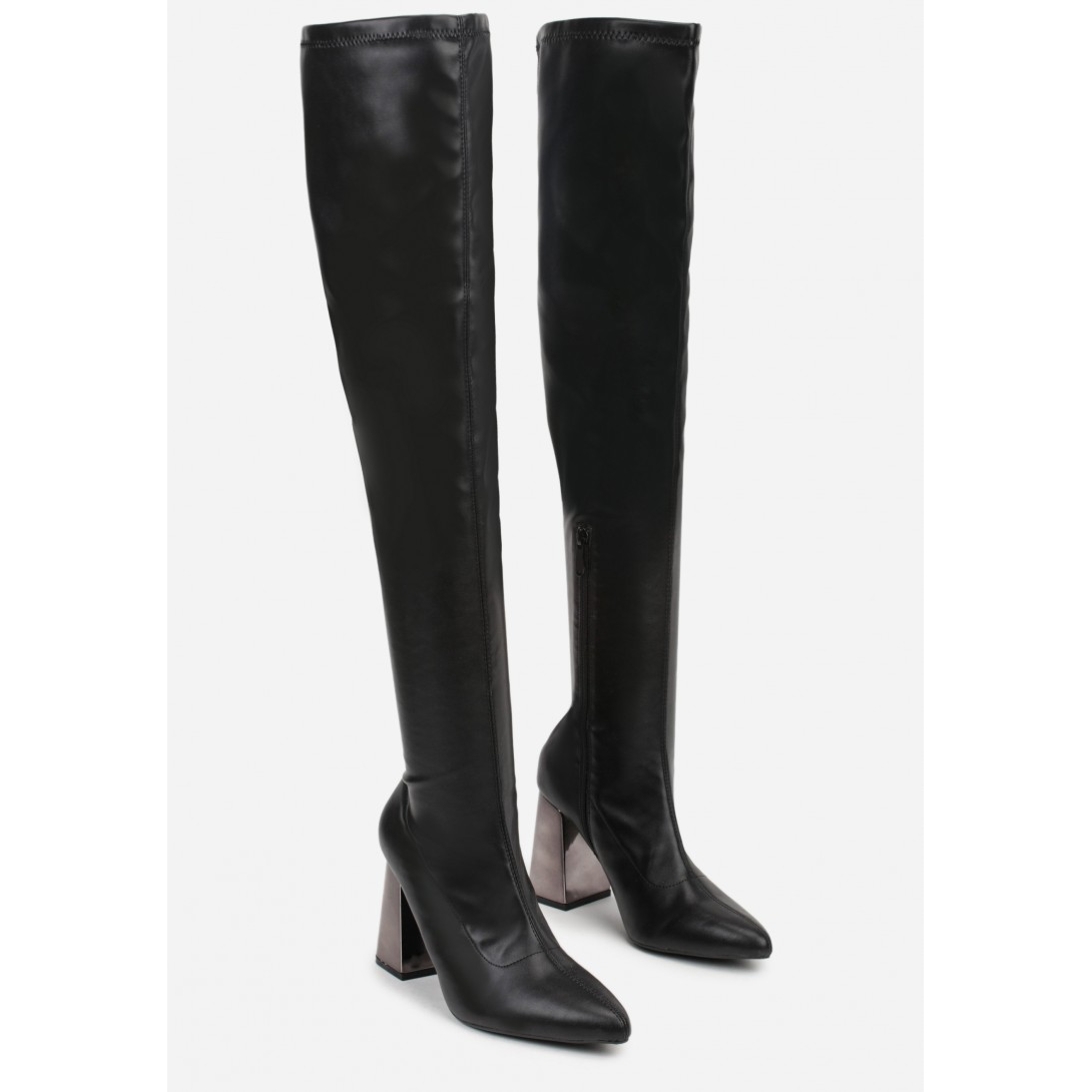 Botki wysokie z kwadratowym obcasem o wysokości 9 cm, które łączą elegancję z nowoczesnym stylem. Wykonane z wysokiej jakości materiału, ocieplone dla dodatkowego komfortu, z praktycznym zapięciem na zamek błyskawiczny z boku. Nosek buta w lekko spiczastym kształcie oraz subtelne zdobienia sprawiają, że są idealnym wyborem na chłodniejsze dni.